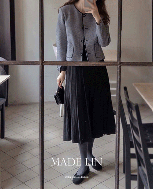 플란더스 시즌체크 라운딩 배색버튼 맵시자켓[size:F(55~66)]