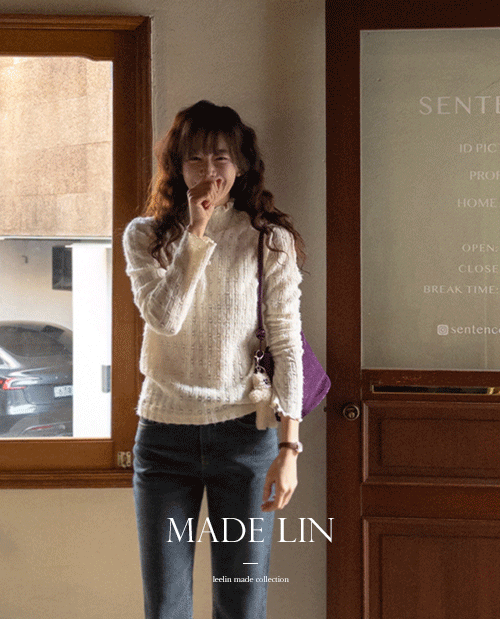 넥&소매 끝단에는 마치 꽃잎같은 물결 디테일이 더해져있어서
