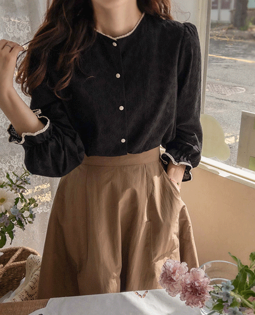 1164172 [MADE] 콜린드 꽃자수 레스넥 샤링소매 블라우스[size:F,1] 46800