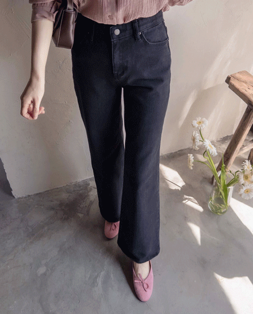 반하이로 골반 착용감 너무 편안하구요~ 요즘 유행하는 크롭트한 기장감의 상의들과도 찰떡같이 잘 어울려 주어요~