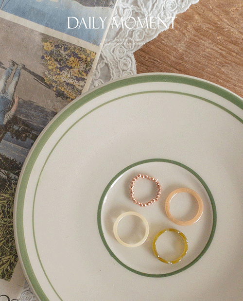 색감에 따라 톤온톤 무드로 조합된 반지 세트로