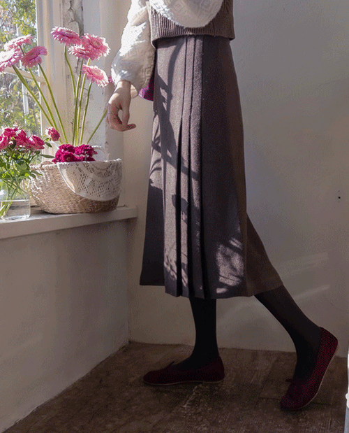 기본 니트 스컷들은 많지만 이렇게 모직처럼 주름을 닥 이쁘게 잡아서 나오는 스컷은 흔하지 않아서요~