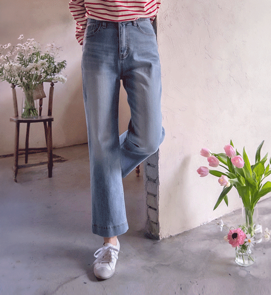 [LABEL] 리리 다트선 스판 뒷밴딩 와이드 데님 팬츠 [size:S,M,L]