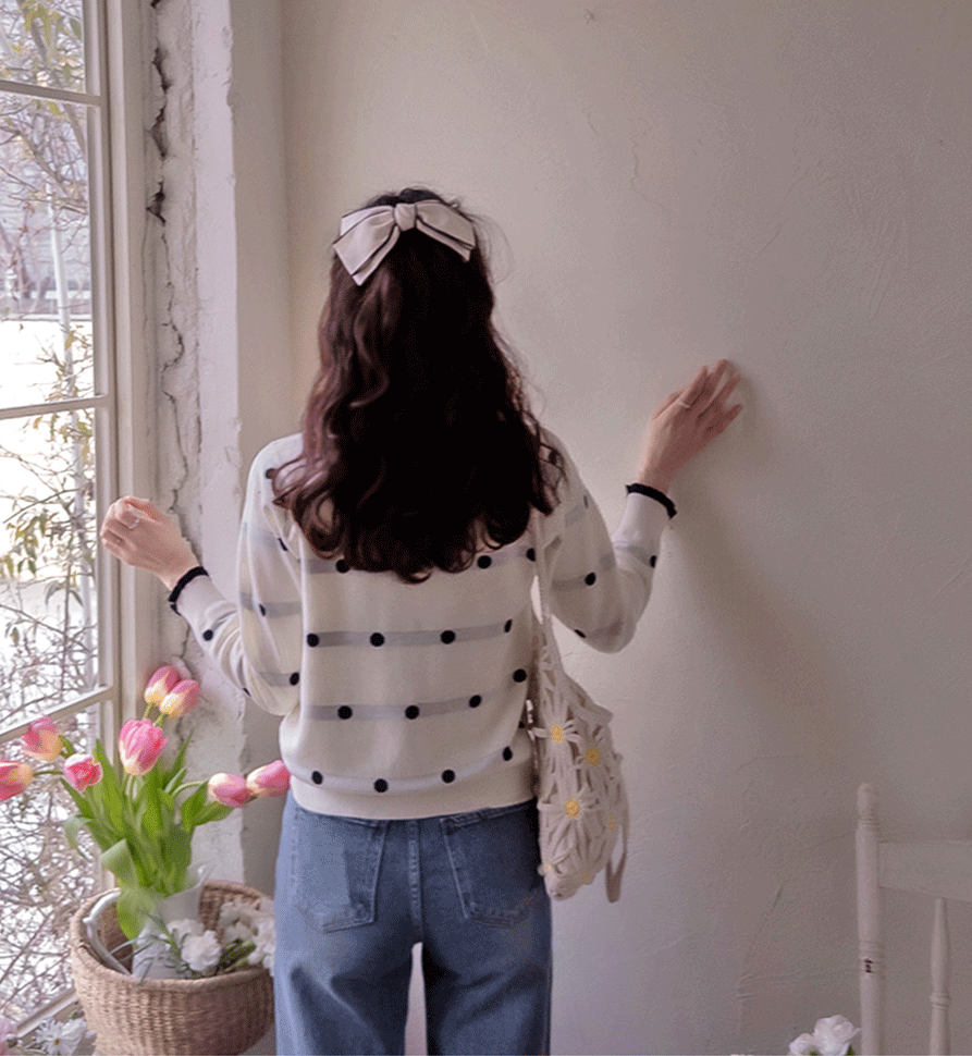 [LABEL] 러브짜임 입체플라워 물결넥 여리핏 가디건 [size:F(55~66)]