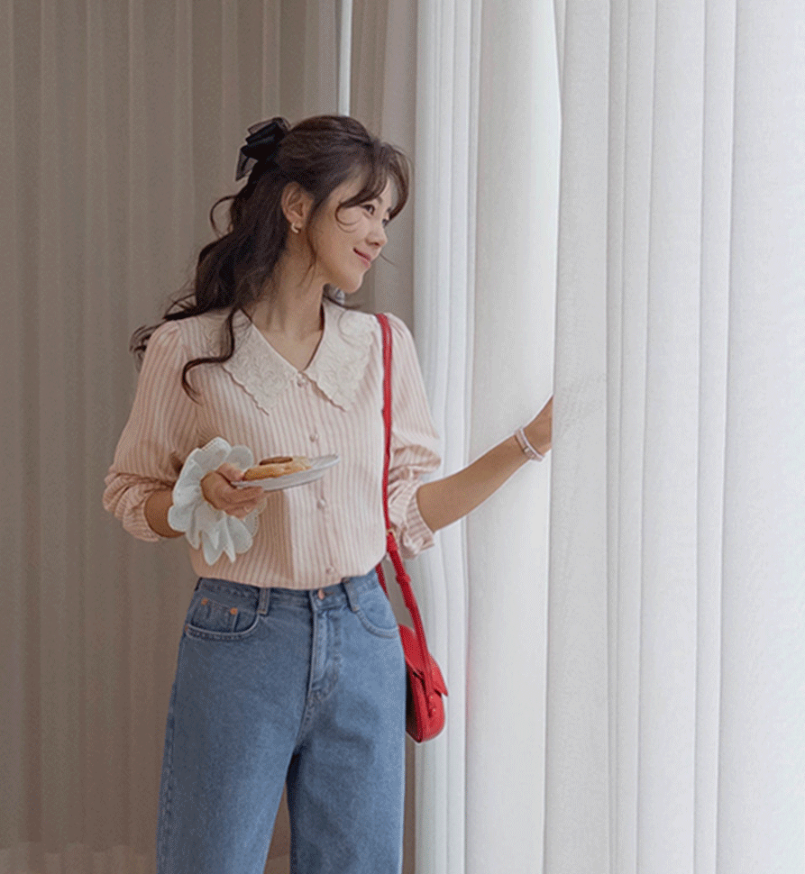 [하늘하늘][구김걱정 ZERO!][LABEL] 케린 로맨틱무드 여리핏 프릴 블라우스 [size:F(55~66반)]