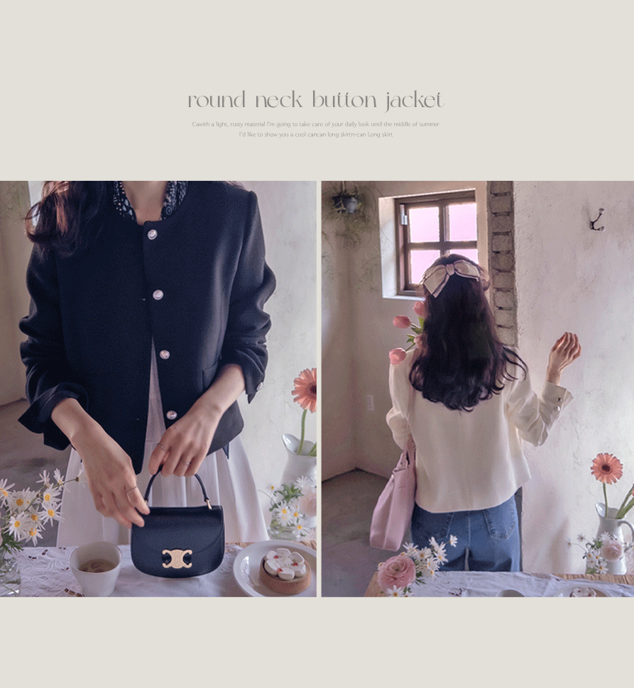 [봄미리입어보기 25% 할인]MADE LIN 플로비 라운드넥 실버버튼 자켓[size:F,1]