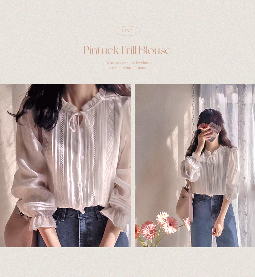 [LABEL] 루디나 리본타이 어깨핀턱 뒷셔링 블라우스 [size:F(55~66)]