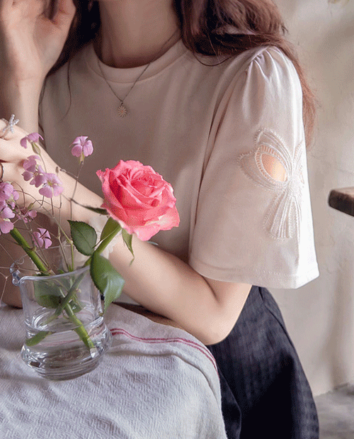 고급스러운 레이스 소매가 포인트로 너무 이쁜 티셧이랍니다~