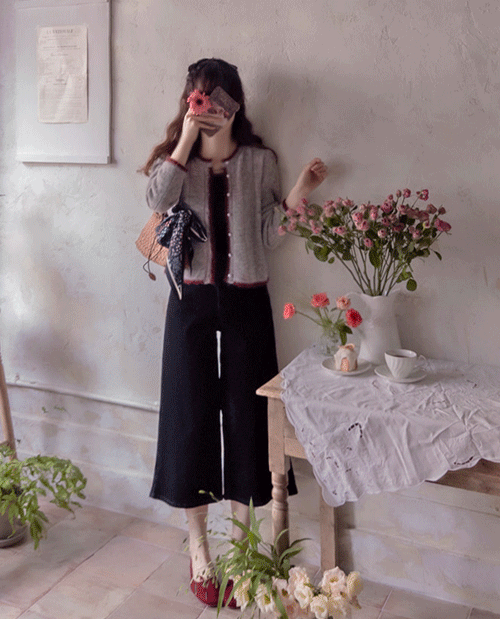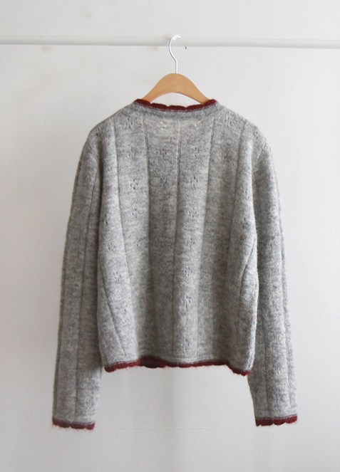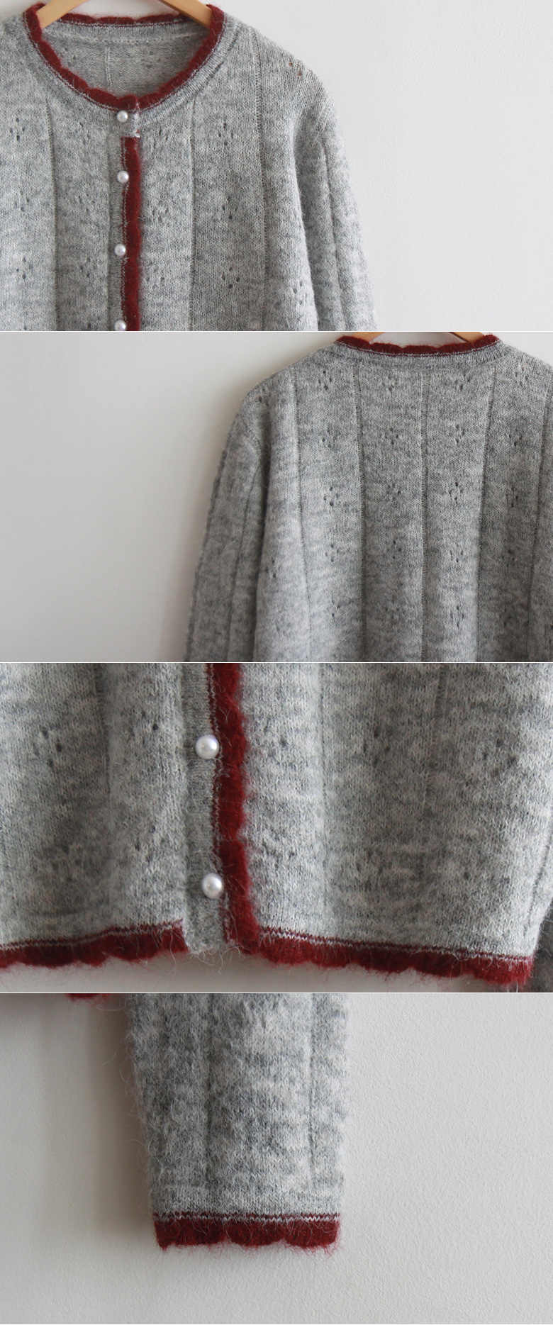 [물결모양의 네크라인으로 러블리한 무드형성][돌아오는시즌에 코디하기 좋은 스타일을 업해드릴 아이템][비교적 부드런스판의 편안한 착용감][배색물결로 포인트 되면서 너무 이뻐요][코디좋은 가디건으로 강추]