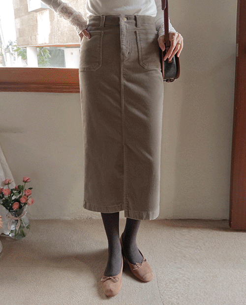 잔잔하고 미니멀한 결의 코듀로이 스커트로