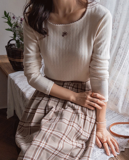 미니멀한 펀칭이 들어가 있어서 은근한 사랑스러움이 느껴지는 골지 원단에