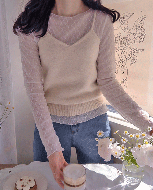 얇은 티셧이나 얇은 블라와 함께 매채하시면 러블리즈 완성~!