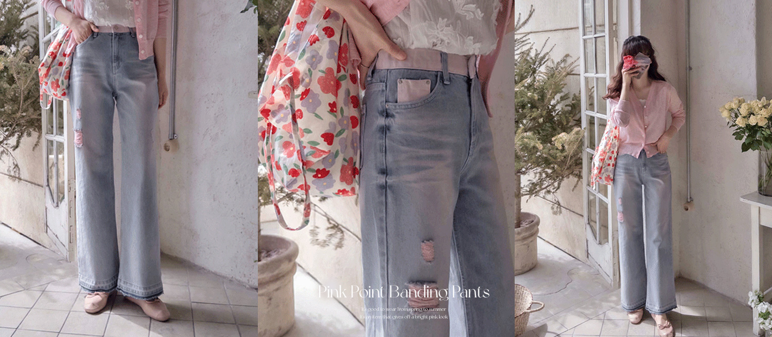 [LABEL] 리리 다트선 스판 뒷밴딩 와이드 데님 팬츠 [size:S,M,L]