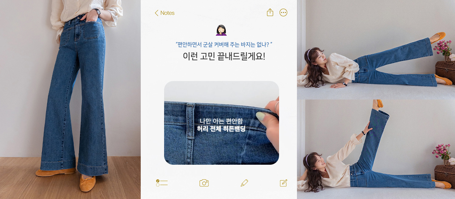 [LABEL] 리리 다트선 스판 뒷밴딩 와이드 데님 팬츠 [size:S,M,L]