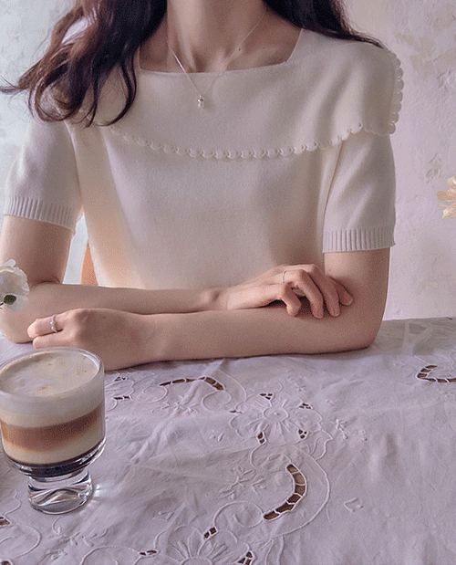 단정하면서도 러블리한 살짝 언발런드한 카라가 이쁜 니트~