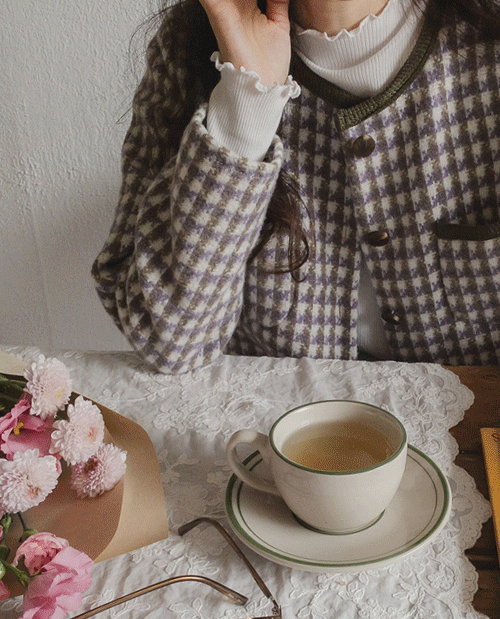 라운드 넥 가디건을 매치해