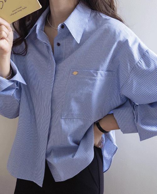 1173261 [LABEL] 모니크 히든버튼 잔잔한체크패턴 데일리 셔츠 [size:F(55~66반)] 46800