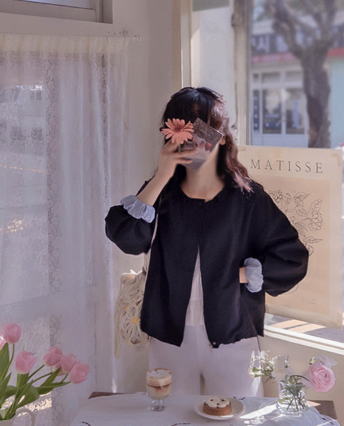 차이나 넥의 안감 셔링 배색이 돋보이는 귀엽고 편아한 아우터 소개 드려요