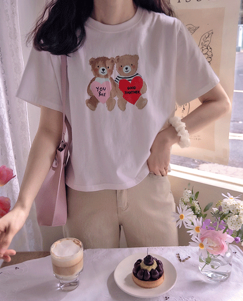 [봄신상][실켓가공의 부드런 원단감][하트와 베어프린팅이 포인트인 티][컬러감 때문에 코디에 활력을 주는 완소티][함께라면 쉬운코디로 너무 좋아요][봄부터 돌아오는 시즌내내 실용적으로 입기 좋은 맵시핏의 티로 강추]