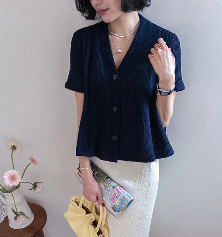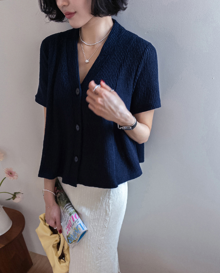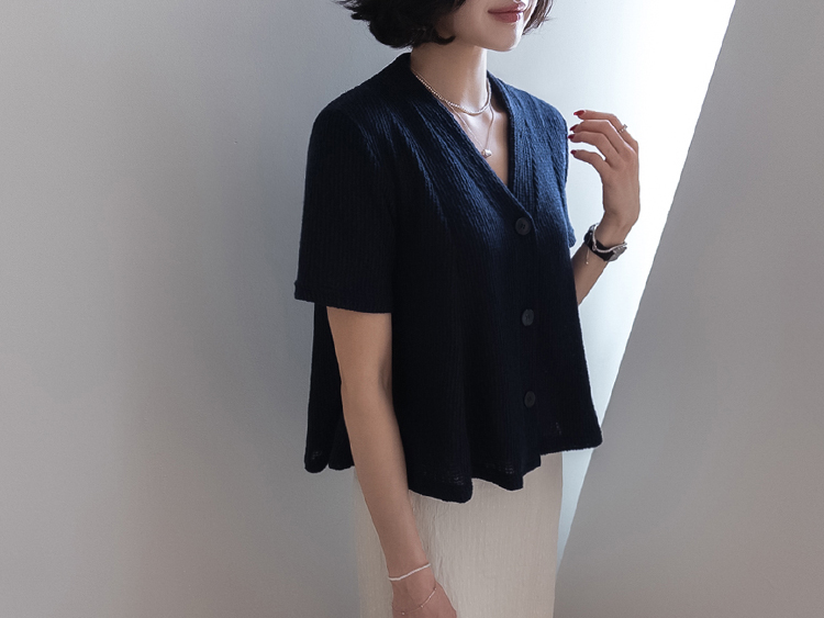 니트 텍스처 반팔 가디건이에요 :)