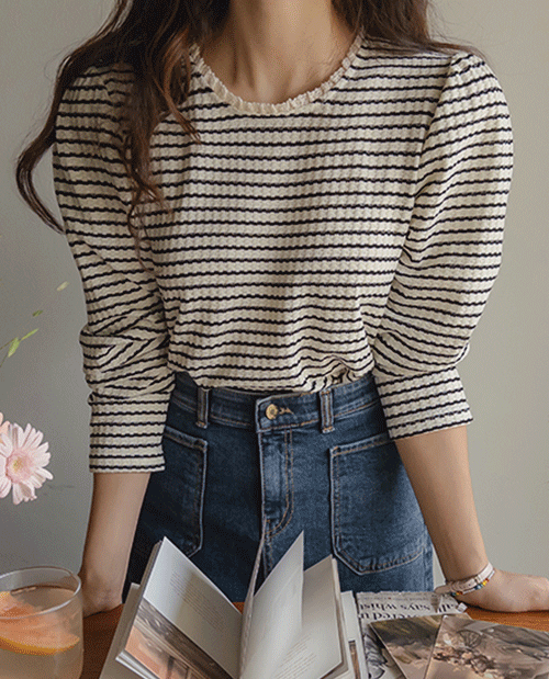 꾸안꾸 스타일의 스트라이프 티셔츠를 가져왔어요~
