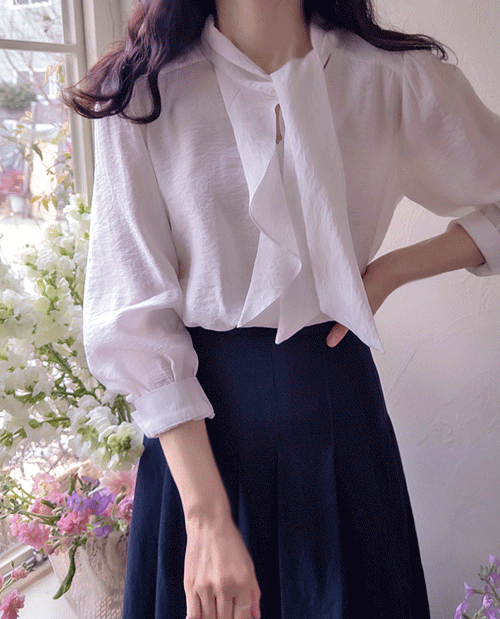 [봄신상][타이디자인으로 한번 묶어주시면 러블리 디자인 완성][넥아래 웨이브 데코는 사랑스런 포인트를 해주었어요][맵시핏을 가지면서 매치하기 좋아 두루 활용도 좋은 단아한 블라우스][단아한 봄봄 블라우스로 강추]