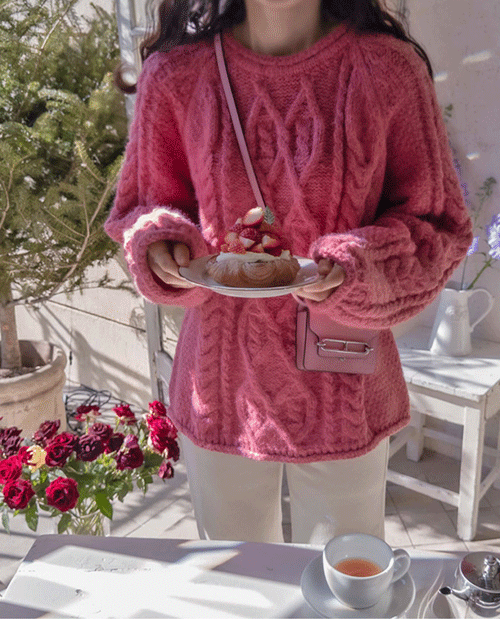 1168717 [LABEL] 스켈드 보송 케이블 부드럽고 여리한 루즈핏 니트 [size:F(55~77)] 38800