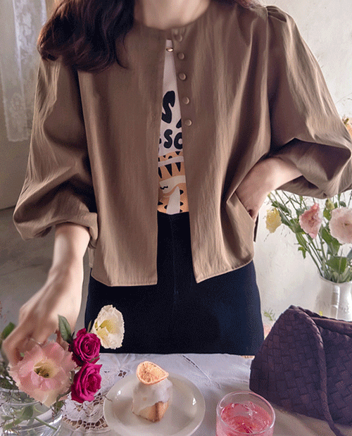 [가을신상][가을에 좋은 원단감][소매는볼륨을 주어 단아한 라인을 만들어 주었어요][귀요미 아방한핏의 세려된 분위기있는 자켓] [버튼도 포인트로 너무 예뻐요][시즌어블한 컬러감의 가볍게 입기좋은 데일리 아우터로 강추]