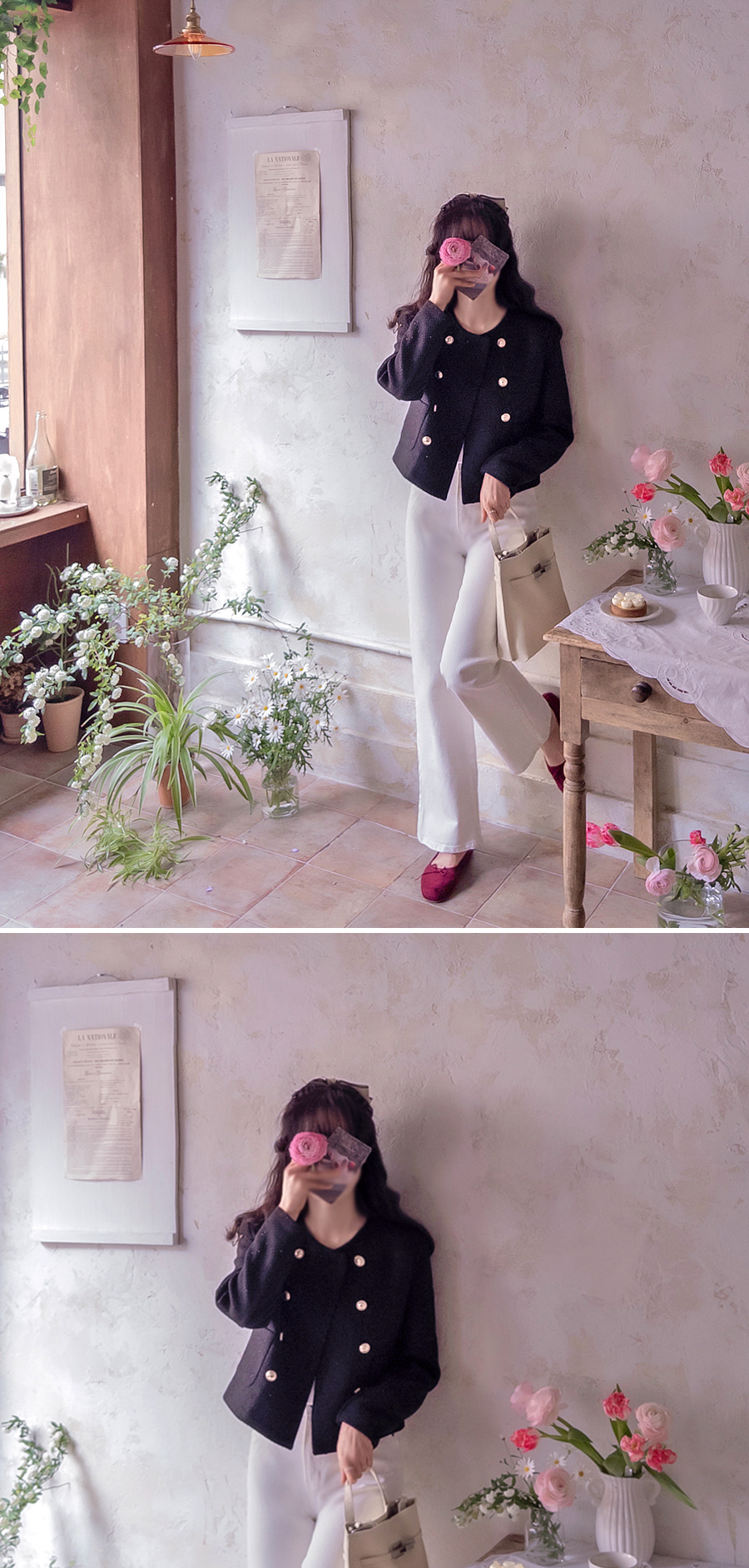 과하지 않는 트위드 원단이 실제보 받아 보시면 원단 훨씬 더 고급스러운 직조감으로 만나실 수 있어요