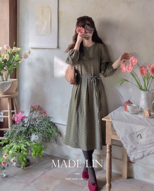 [허리끈세트: 분리되요-엣지핏을 만들어 주었어요][스커트 아래부분은 핀탁 디자인으로 구성하여 맵시있는 단아한핏의 디자인] [미니 플라워 패턴을 담아 러블리하면서 매력적인 무드를 실었어요][단아하면서 스타일을 업해드릴 맵시핏 원피스로 강추]