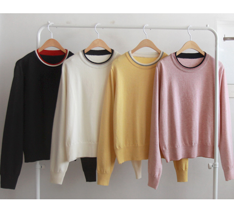 [봄신상][부드러운 스판의 편안한 원단감][최고의 가성비 컬러별로 추천 기본에 넥포인트][아랫단 시보리로 깔끔 아웃핏] [ 넥레이어드 디자인으로 포인트했어요][촉촉스판의 부드런 원단감으로 매력적인 연출가능해요][화사하고 세련된 컬러감의 니트]